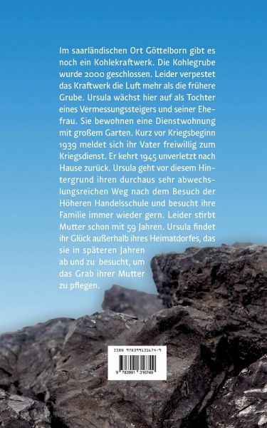 Im saarländischen Ort Göttelborn gibt es noch ein Kohlekraftwerk. Die Kohlegrube wurde 2000 geschlossen. Leider verpestet das Kraftwerk die Luft mehr als die frühere Grube. Ursula wächst hier auf als Tochter eines Vermessungssteigers und seiner Ehefrau. Sie bewohnen eine Dienstwohnung mit großem Garten. Kurz vor Kriegsbeginn 1939 meldet sich ihr Vater freiwillig zum Kriegsdienst. Er kehrt 1945 unverletzt nach Hause zurück. Ursula geht vor diesem Hintergrund ihren durchaus sehr abwechslungsreichen Weg nach dem Besuch der Höheren Handelsschule und besucht ihre Familie immer wieder gern. Leider stirbt Mutter schon mit 59 Jahren. Ursula findet ihr Glück außerhalb ihres Heimatdorfes, das sie in späteren Jahren ab und zu besucht, um das Grab ihrer Mutter zu pflegen.