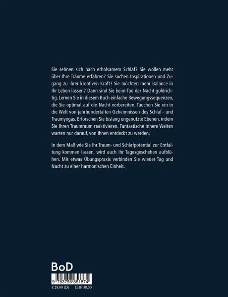 Sie sehnen sich nach erholsamen Schlaf? Sie wollen mehr über Ihre Träume erfahren? Sie suchen Inspirationen und Zugang zu Ihrer kreativen Kraft? Sie möchten mehr Balance in Ihr Leben lassen? Dann sind Sie beim Tao der Nacht goldrichtig. Lernen Sie in diesem Buch einfache Bewegungssequenzen, die Sie optimal auf die Nacht vorbereiten. Tauchen Sie ein in die Welt von jahrhundertalten Geheimnissen des Schlaf- und Traumyogas. Erforschen Sie bislang ungenutzte Ebenen, indem Sie Ihren Traumraum reaktivieren. Fantastische innere Welten warten nur darauf, von Ihnen entdeckt zu werden.In dem Maß wie Sie Ihr Traum- und Schlafpontential zur Entfaltung kommen lassen, wird auch Ihr Tagesgeschehen aufblühen. Mit etwas Übungspraxis verbinden Sie wieder Tag und Nacht zu einer harmonischen Einheit.