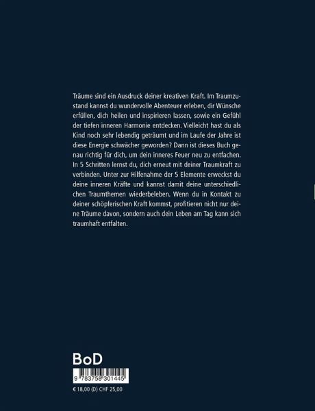 Träume sind ein Ausdruck deiner kreativen Kraft. Im Traumzustand kannst du wundervolle Abenteuer erleben, dir Wünsche erfüllen, dich heilen und inspirieren lassen, sowie ein Gefühl der tiefen inneren Harmonie entdecken. Vielleicht hast du als Kind noch sehr lebendig geträumt und im Laufe der Jahre ist diese Energie schwächer geworden? Dann ist dieses Buch genau richtig für dich, um dein inneres Feuer neu zu entfachen. In 5 Schritten lernst du, dich erneut mit deiner Traumkraft zu verbinden. Unter zur Hilfenahme der 5 Elemente erweckst du deine inneren Kräfte und kannst damit deine unterschiedlichen Traumthemen wiederbeleben. Wenn du in Kontakt zu deiner schöpferischen Kraft kommst, profitieren nicht nur deine Träume davon, sondern auch dein Leben am Tag kann sich traumhaft entfalten.