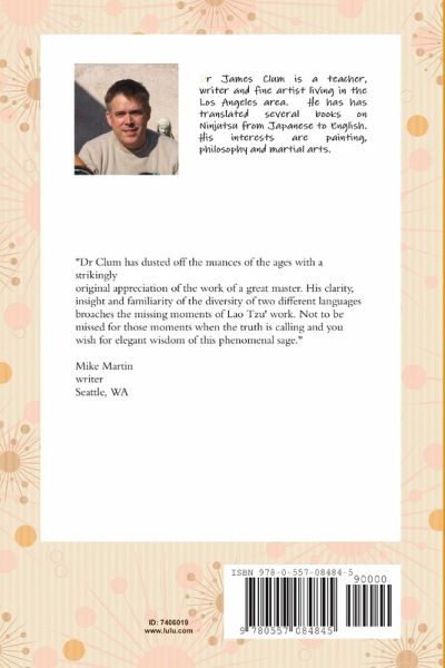 Not Going Out of My Door is a new and refreshing translation of Lao Tsu's Tao Te Ching. This book is illustrated with children and captures memorable moments of their lives as they represent the topics of this classic work. This book was conservatively translated directly from the original Chinese text. It offers an accurate yet unique experience of the Tao.