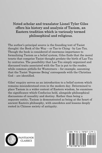 Noted scholar and translator Lionel Tyler Giles offers his history and analysis of Taoism, an Eastern tradition which is variously termed philosophical and religious. The author’s principal source is the founding text of Taoist thought; the Book of the Way – or Tao te Ching - by Lao Tzu. Though the book is considered of enormous importance to formalizing Taoism as a belief system, Giles finds that the moral tenets that comprise Taoist thought predate the birth of Lao Tzu by centuries. The possibility that Lao Tzu simply organized and discussed traits associated with the Tao is put to the reader, while common pitfalls for Westerners – for example, assuming that the Taoist ‘Supreme Being’ corresponds with the Christian God – are identified. Giles’ enquiry serves as an introduction to a belief system which remains misunderstood even in the modern day. Determined to place Taoism in a wider context of Eastern wisdom, he examines the significance which Confucius held, alongside philosophical discussions of causality and destiny. Rather than being a separate entity, Taoism is demonstrated as being at the heart of ancient Eastern philosophy, with anecdotes and lessons deeply rooted in Chinese society of antiquity.