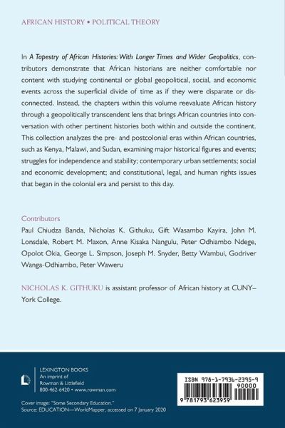 Introduction: The Future of History: Transtemporal, Transnational across Geographical Borders Nicholas Kariuki Githuku Chapter 1: On Writing Kenya's History John Lonsdale Chapter 2: From the Upper Delaware River to the Banks of the Monongahela via Lake Victoria Robert M. Maxon Chapter 3: Myth and Reality in the Forging of a Kenyan National History: Oginga Odinga's Heroism Robert M. Maxon Chapter 4: Daniel arap Moi: A Challenge for Historians Robert M. Maxon Chapter 5: Ainsworth after Dark: The Pied Piper of African Development in Colonial Kenya, 1895-1920? Okia Opolot Chapter 6: Challenge to African Democracy: The Activism and Assassination of Pio Gama Pinto Godriver Odhiambo Chapter 7: Eastlands, Nairobi: Memory, History, and Recovery Betty Wambui Chapter 8: Plagues and Pestilences in Late Nineteenth-Century Samburuland George L. Simpson, Jr., and Peter Waweru Chapter 9: The Evolution of Imperial Social Development Policy and Practice in British Sudan: A Comparative Case