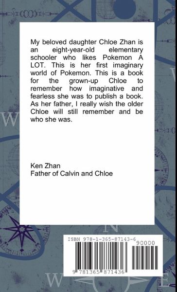 My beloved daughter Chloe Zhan is an eight-year-old elementary schooler who likes Pokemon A LOT. This is her first imaginary world of Pokemon. This is a book for the grown-up Chloe to remember how imaginative and fearless she was to publish a book. As her father, I really wish the older Chloe will still remember and be who she was.