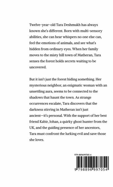 Twelve-year-old Tara Deshmukh has always known she's different. Born with multi-sensory abilities, she can hear whispers no one else can, feel the emotions of animals, and see what's hidden from ordinary eyes. When her family moves to the misty hill town of Matheran, Tara senses the forest holds secrets waiting to be uncovered. But it isn't just the forest hiding something. Her mysterious neighbor, an enigmatic woman with an unsettling aura, seems to be connected to the shadows that haunt the town. As strange occurrences escalate, Tara discovers that the darkness stirring in Matheran isn't just ancient-it's personal. With the support of her best friend Kabir, Johan, a quirky ghost hunter from the UK, and the guiding presence of her ancestors, Tara must confront the lurking evil. In a race against time, Tara must harness her unique powers and uncover the truth about Matheran's past. Can she outwit the darkness, or will the shadows consume everything she loves? Blending mystery, supernatural thrills, and a touch of humor, Tara and the Shadows of Matheran is a captivating tale of bravery, friendship, and self-discovery.