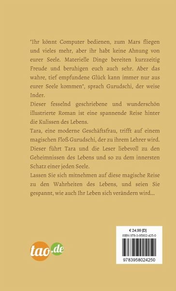 Tara, eine moderne Geschäftsfrau, trifft auf einem magischen Floß Gurudschi, der zu ihrem Lehrer wird. Dieser führt Tara und die Leser liebevoll zu den Geheimnissen des Lebens und so zu dem innersten Schatz einer jeden Seele.