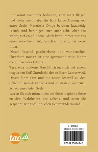 Tara, eine moderne Geschäftsfrau, trifft auf einem magischen Floß Gurudschi, der zu ihrem Lehrer wird. Dieser führt Tara und die Leser liebevoll zu den Geheimnissen des Lebens und so zu dem innersten Schatz einer jeden Seele.
