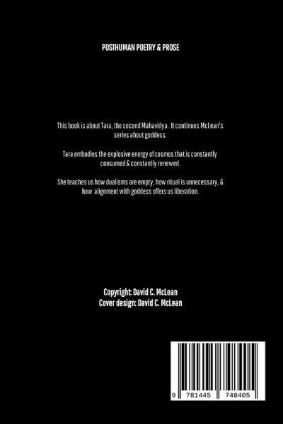 This book is about Tara, the second Mahavidya. It continues McLean's series about goddess. Tara embodies the explosive energy of cosmos that is constantly consumed & constantly renewed. She teaches us how dualisms are empty, how ritual is unnecessary, & how alignment with goddess offers us liberation.