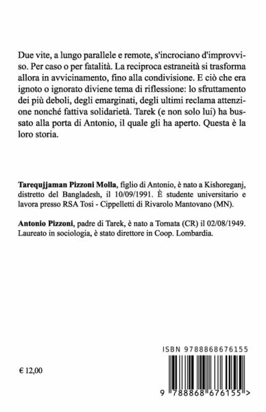 Due vite, a lungo parallele e remote, s'incrociano d'improvviso. Per caso o per fatalità. La reciproca estraneità si trasforma allora in avvicinamento, fino alla condivisione. E ciò che era ignoto o ignorato diviene tema di riflessione: lo sfruttamento dei più deboli, degli emarginati, degli ultimi reclama attenzione nonché fattiva solidarietà. Tarek (e non solo lui) ha bussato alla porta di Antonio, il quale gli ha aperto. Questa è la loro storia.