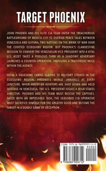 John Phoenix and his elite CIA team enter the treacherous battleground of Mexico City, assigned to oversee peace talks between Venezuela and Guyana, two nations on the brink of war over the coveted Essequibo Region. Phoenix's clandestine mission to convert the Venezuelan vice president into a vital U.S. asset takes a perilous turn as a shadowy adversary launches a counter-operation, unveiling a traitorous mole within the agency. From a turbulent cartel shooting to military strikes in the Essequibo Region, Phoenix's world unravels at every juncture. When American aviators are shot down and held hostage in Venezuela, the U.S. president issues a high-stakes directive: Phoenix and his team must rescue the captives. Faced with an impossible task, the seasoned CIA operative must himself sacrifice for the greater good and become the target in a deadly game of deception.