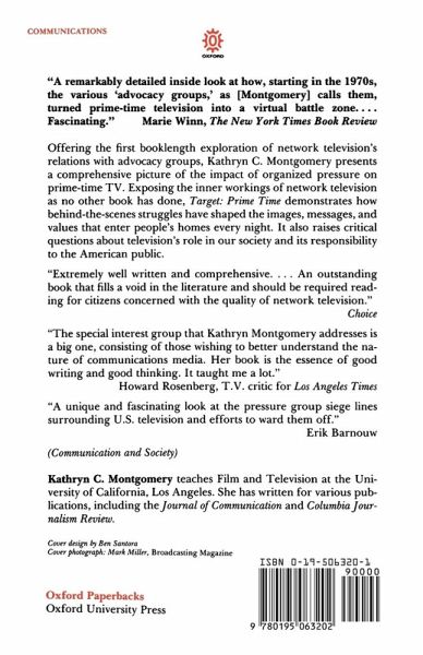 Offering the first booklength exploration of network television's relations with advocacy groups, Kathryn C. Montgomery presents a comprehensive picture of the impact of organized pressure of prime-time TV. Exposing the inner workings of network television as no other book has done, Target: Prime Time demonstrates how behind-the-scenes struggles have shaped the images, messages, and values that enter people's homes every night.
