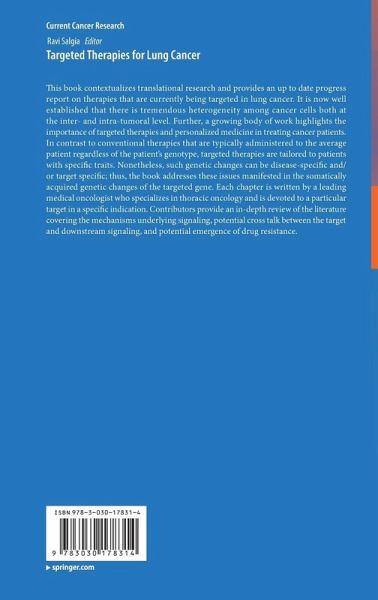 This book contextualizes translational research and provides an up to date progress report on therapies that are currently being targeted in lung cancer. It is now well established that there is tremendous heterogeneity among cancer cells both at the inter- and intra-tumoral level. Further, a growing body of work highlights the importance of targeted therapies and personalized medicine in treating cancer patients. In contrast to conventional therapies that are typically administered to the average patient regardless of the patient's genotype, targeted therapies are tailored to patients with specific traits. Nonetheless, such genetic changes can be disease-specific and/or target specific; thus, the book addresses these issues manifested in the somatically acquired genetic changes of the targeted gene. Each chapter is written by a leading medical oncologist who specializes in thoracic oncology and is devoted to a particular target in a specific indication. Contributors provide an in-depth review of the literature covering the mechanisms underlying signaling, potential cross talk between the target and downstream signaling, and potential emergence of drug resistance.