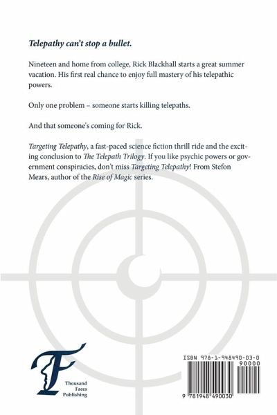 Telepathy can't stop a bullet. Nineteen and home from college, Rick Blackhall starts a great summer vacation. His first real chance to enjoy full mastery of his telepathic powers. Only one problem - someone starts killing telepaths. And that someone's coming for Rick. Targeting Telepathy, a fast-paced science fiction thrill ride and the exciting conclusion to The Telepath Trilogy. If you like psychic powers or government conspiracies, don't miss Targeting Telepathy! From Stefon Mears, author of the Rise of Magic series.