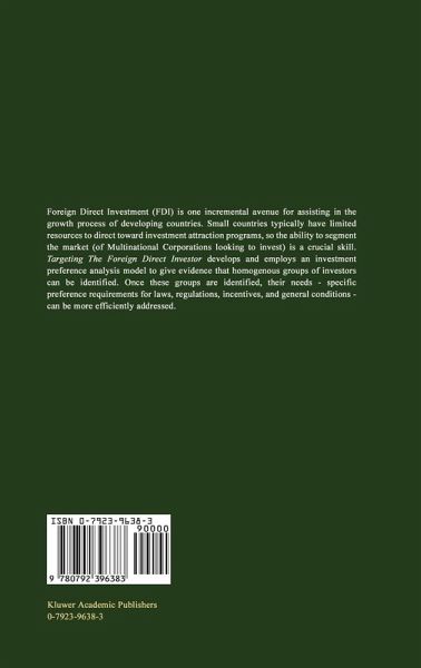 Foreign Direct Investment (FDI) is one avenue for offering assistance to developing countries in their efforts to grow. Small countries typically have limited resources to direct toward investment attraction programs, so the ability to segment the market (of Multinational Corporations looking to invest) is a crucial skill. This book develops and employs an investment preference analysis model to give evidence that homogenous groups of investors can be identified. Once these groups are identified, their needs - specific preference requirements for laws, regulations, incentives, and general conditions - can be more efficiently addressed.
