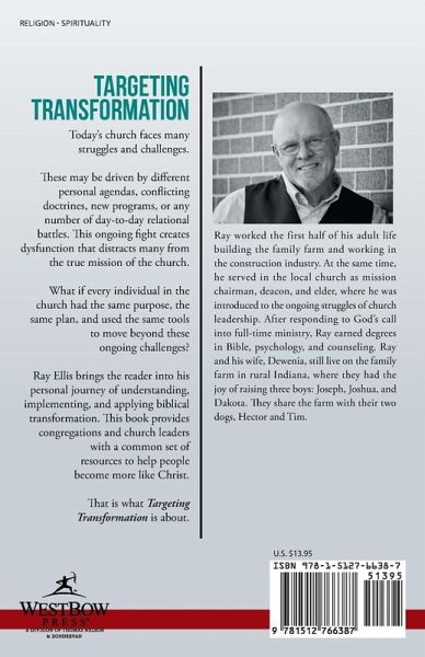 Today's church faces many struggles and challenges. These may be driven by different personal agendas, conflicting doctrines, new programs, or any number of day-to-day relational battles. This ongoing fight creates dysfunction that distracts many from the true mission of the church. What if every individual in the church had the same purpose, the same plan, and used the same tools to move beyond these ongoing challenges? Ray Ellis brings the reader into his personal journey of understanding, implementing, and applying biblical transformation. This book provides congregations and church leaders with a common set of resources to help people become more like Christ. That is what Targeting Transformation is about.