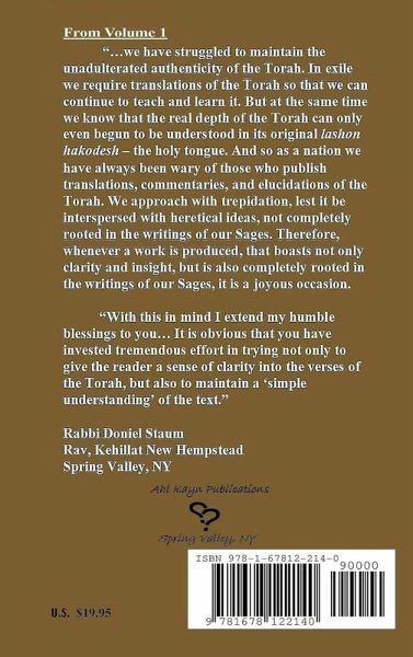 Don't we have more than enough translations of the Holy Bible? Unfortunately, most translations have three flaws: 1.Translators who did not grow up with Biblical Hebrew, the Holy Language, as a living language find it difficult to appreciate its nuances and poetry. This often results in translation errors, lost subtleties in meaning, and apparently conflicting ideas among different translations. 2.By using footnotes and margin comments, modern translators seek to overcome these difficulties, but this makes the reading labored since reading is constantly interrupted. 3.The Torah was meant to be chanted, with the tunes adding meaning and emphasis to the listener's understanding. Chants are hard to translate into words. Aramaic Targum "translations" of 2000+ years ago were successful in overcoming these limitations. This Targum Americana combines traditional translation and commentary with some sense of the beauty in English of the original Holy Tongue.