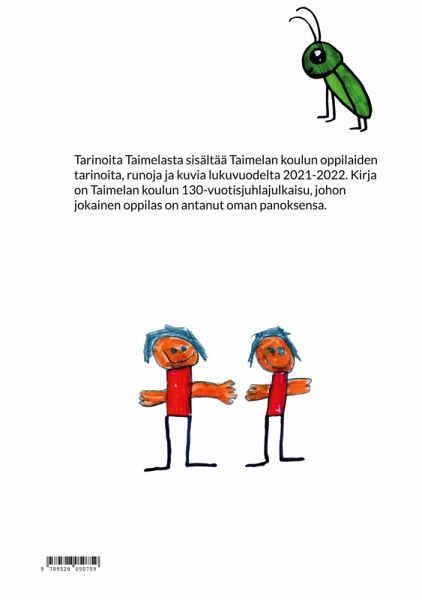Tarinoita Taimelasta sisältää Taimelan koulun oppilaiden tarinoita, runoja ja kuvia lukuvuodelta 2021-2022.