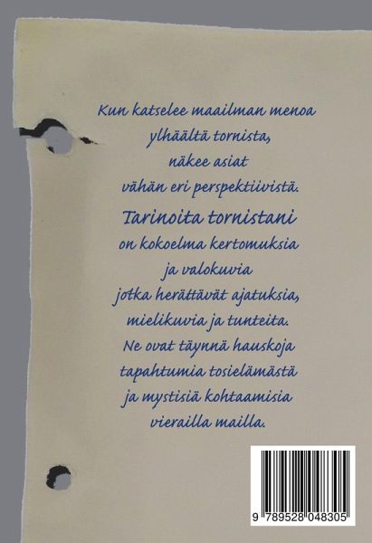Kun katselee maailman menoa ylhäältä tornista, näkee asiat vähän eri perspektiivistä. Tarinoita tornistani on kokoelma kertomuksia ja valokuvia jotka herättävät ajatuksia, mielikuvia ja tunteita. Ne ovat täynnä hauskoja tapahtumia tosielämässä ja mystisiä kohtaamisia vierailla mailla.