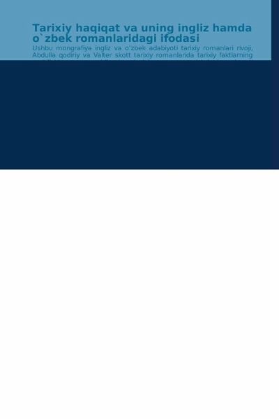 Ushbu mongrafiya ingliz va o'zbek adabiyoti tarixiy romanlari rivoji, Abdulla qodiriy va Valter skott tarixiy romanlarida tarixiy faktlarning yoritilishi va yozuvchilarning tarixiy roman yozishdagi mahorati masalalariga bag'ishlangan.Ushbu monografiya ingliz va o`zbek yozuvchilarining ijodida, ayniqsa, romanchilikda tarixiy faktlarni mohirona berilishi mavzusi o`rganilib, tahlil qilinadi, taqqoslanadi va yozuvchilar fikrlaridan olingan misollar yordamida ochib beriladi.Ushbu monografiya Angliya adabiyoti, Qiyosiy adabiyotshunoslik, Adabiy tanqid kabi fanlarning tegishli o`rinlarini yoritishga yordam beradi.
