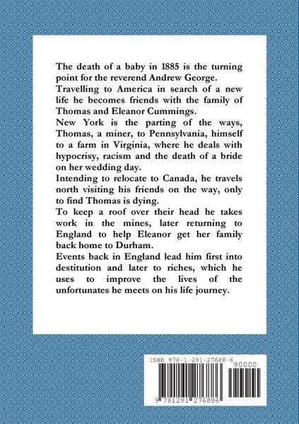 The death of a baby in 1885 is the turning point for the reverend Andrew George. Travelling to America in search of a new life he becomes friends with the family of Thomas and Eleanor Cummings. New York is the parting of the ways, Thomas, a miner, to Pennsylvania, himself to a farm in Virginia, where he deals with hypocrisy, Racism and the death of a bride on her wedding day. Intending to relocate to Canada, he travels north visiting his friends on the way, only to find Thomas is dying. To keep a roof over their head he takes work in the mines, later returning to England to help Eleanor get her family back home to Durham. Events back in England lead him first into destitution and later to riches, which he uses to improve the lives of the unfortunates he meets on his life journey.