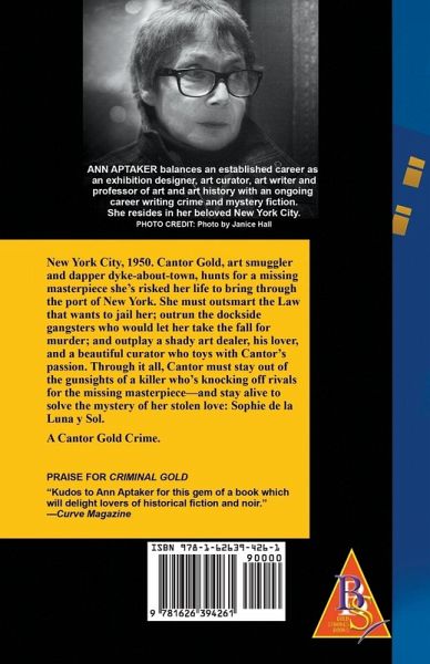 New York City, 1950. Cantor Gold, art smuggler and dapper dyke-about-town, hunts for a missing masterpiece she's risked her life to bring through the port of New York. She must outsmart the Law that wants to jail her; outrun the dockside gangsters who would let her take the fall for murder; and outplay a shady art dealer, his lover, and a beautiful curator who toys with Cantor's passion. Through it all, Cantor must stay out of the gunsights of a killer who's knocking off rivals for the missing masterpiece-and stay alive to solve the mystery of her stolen love: Sophie de la Luna y Sol. A Cantor Gold Crime…mehr