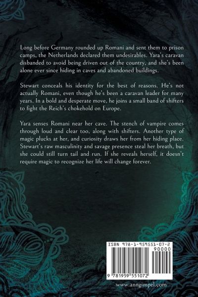 Long before Germany rounded up Romani and sent them to prison camps, the Netherlands declared them undesirables. Yara’s caravan disbanded to avoid being driven out of the country, and she’s been alone ever since hiding in caves and abandoned buildings. Stewart conceals his identity for the best of reasons. He’s not actually Romani, even though he’s been a caravan leader for many years. In a bold and desperate move, he joins a small band of shifters to fight the Reich’s chokehold on Europe. Yara senses Romani near her cave. The stench of vampire comes through loud and clear too, along with shifters. Another type of magic plucks at her, and curiosity draws her from her hiding place. Stewart’s raw masculinity and savage presence steal her breath, but she could still turn tail and run. If she reveals herself, it doesn’t require magic to recognize her life will change forever.
