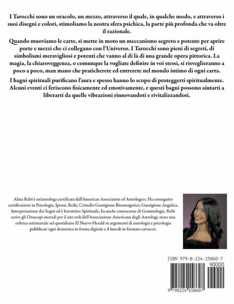 I Tarocchi sono un oracolo, un mezzo, attraverso il quale, in qualche modo, e attraverso i suoi disegni e colori, stimoliamo la nostra sfera psichica, la parte più profonda che va oltre il razionale. Quando muoviamo le carte, si mette in moto un meccanismo segreto e potente per aprire porte e mezzi che ci collegano con l'Universo. I Tarocchi sono pieni di segreti, di simbolismi meravigliosi e potenti che vanno al di là di una grande opera pittorica. La magia, la chiaroveggenza, o comunque la vogliate definire in voi stessi, si risveglieranno a poco a poco, man mano che praticherete ed entrerete nel mondo intimo di ogni carta. I bagni spirituali purificano l'aura e spesso hanno lo scopo di proteggerti spiritualmente. Alcuni eventi ci feriscono fisicamente ed emotivamente, e questi bagni possono aiutarti a liberarti da quelle vibrazioni rinnovandoti e rivitalizzandoti.