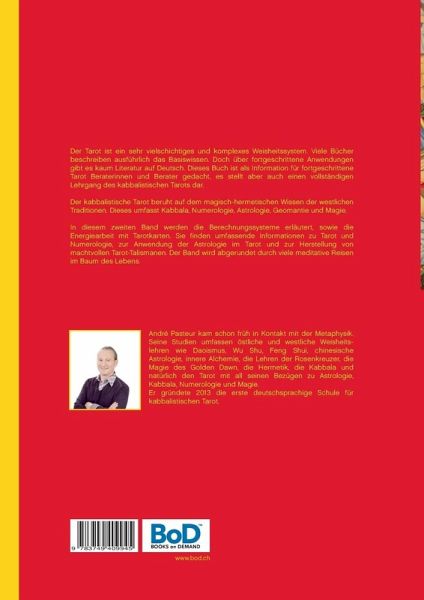 Der Tarot ist ein sehr vielschichtiges und komplexes Weisheitssystem. Viele Bücher beschreiben ausführlich das Basiswissen. Doch über fortgeschrittene Anwendungen gibt es kaum Literatur auf Deutsch. Dieses Buch ist als Information für fortgeschrittene Tarot Beraterinnen und Berater gedacht, es stellt aber auch einen vollständigen Lehrgang des kabbalistischen Tarots dar. Der kabbalistische Tarot beruht auf dem magisch-hermetischen Wissen der westlichen Traditionen. Dieses umfasst die Schriften grosser Meister wie Iamblichus oder Agrippa von Nettesheim, die Kabbala, die Alchemie, die Numerologie, Astrologie, Geomantie und Magie. In diesem zweiten Band werden die Berechnungssysteme erläutert, sowie die Energiearbeit mit Tarotkarten. Sie finden umfassende Informationen zu Tarot und Numerologie, zur Anwendung der Astrologie im Tarot und zur Herstellung von machtvollen Tarot-Talismanen. Der Band wird abgerundet durch viele meditative Reisen im Baum des Lebens.