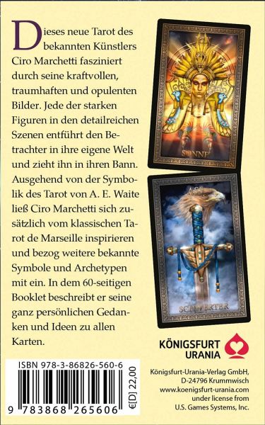 Dies ist das neueste und persönlichste Tarot-Deck des beliebten Digital-Künstlers Ciro Marchetti. Ursprünglich für eine exklusive Sonderausgabe im Selbstverlag entworfen, hat er es nun für eine populäre Edition freigegeben. Ausgehend von der Symbolik der weltberühmten A.E. Waite-Karten ließ Ciro Marchetti sich auch von dem klassischen Tarot de Marseille inspirieren und bezog weitere überlieferte Symbole und Archetypen in seine Phantasie mit ein. Entstanden ist ein detailreiches Tarot-Deck in der für den Künstler typischen, sehr modernen und unverkennbaren Bildsprache.