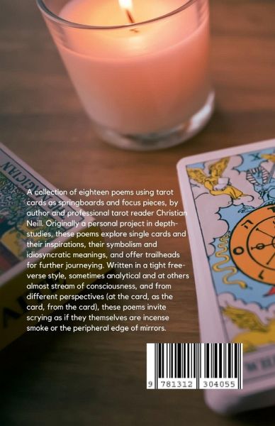 A collection of eighteen poems using individual tarot cards as springboards for reflection, meditation, and personal exploration, by a seasoned professional tarot reader. The poems are written in a tight free-verse style from different perspectives. The book includes full-color illustrations of the cards.