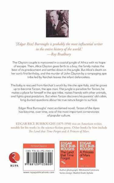 The Clayton couple is marooned in a coastal jungle of Africa, with no hope of escape. Then, Alice Clayton gives birth to a boy, and the family makes the best of its predicament and settles down in the jungle. But Alice's death on her son's first birthday, and the murder of John Clayton by a rampaging ape tribe led by Kerchak, leaves the infant defenceless. The baby is rescued from Kerchak's wrath by the she-ape Kala, and he grows up to become Tarzan, the ape-man. The jungle is paradise for Tarzan; he makes a place for himself in the ape tribe, makes friends with other animals, and fights great predators. But when Tarzan discovers his parents' old cabin, long-buried questions about his true nature begin to surface. Edgar Rice Burroughs's most acclaimed novel has become, over time, one of the most important cornerstones of popular culture.