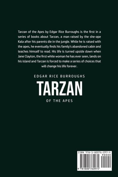 Do you want to read Tarzan of the Apes? If so then keep reading... Tarzan of the Apes by Edgar Rice Burroughs is the first in a series of books about Tarzan, a man raised by the she-ape Kala after his parents die in the jungle. While he is raised with the apes, he eventually finds his family's abandoned cabin and teaches himself to read. His life is turned upside down when Jane Clayton, the first white woman he has ever seen, lands on his island and Tarzan is forced to make a series of choices that will change his life forever. What are you waiting for Tarzan of the Apes is one click away, select the "Buy Now" button in the top right corner NOW!…mehr