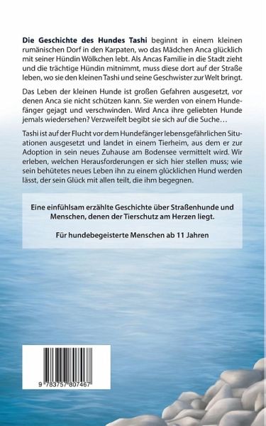 Die Geschichte des Hundes Tashi beginnt in einem kleinen rumänischen Dorf in den Karpaten, wo das Mädchen Anca glücklich mit seiner Hündin Wölkchen lebt. Als Ancas Familie in die Stadt zieht und die trächtige Hündin mitnimmt, muss diese dort auf der Straße leben, wo sie den kleinen Tashi und seine Geschwister zur Welt bringt.Das Leben der kleinen Hunde ist großen Gefahren ausgesetzt, vor denen Anca sie nicht schützen kann. Sie werden von einem Hundefänger gejagt und verschwinden. Wird Anca ihre geliebten Hunde jemals wiedersehen? Verzweifelt begibt sie sich auf die Suche...Tashi ist auf der Flucht vor dem Hundefänger lebensgefährlichen Situationen ausgesetzt und landet in einem Tierheim, aus dem er zur Adoption in sein neues Zuhause am Bodensee vermittelt wird. Wir erleben, welchen Herausforderungen er sich hier stellen muss; wie sein behütetes neues Leben ihn zu einem glücklichen Hund werden lässt, der sein Glück mit allen teilt, die ihm begegnen.Eine einfühlsam erzählte Geschichte über Straßenhunde und Menschen, denen der Tierschutz am Herzen liegt.Für hundebegeisterte Menschen ab 11 Jahren