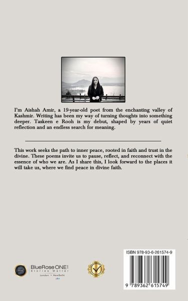 *Taskeen-e-Rooh* is a poetic journey into the soul, capturing themes of spirituality and self-reflection through the beauty of Urdu verse. Authored by Aishah Amir, this collection invites readers to explore inner peace, drawing upon a blend of cultural insights and universal truths. A must-read for anyone in search of solace and inspiration, it offers gentle wisdom for the spirit and tranquility for the mind.