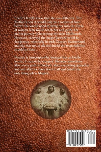 Cécile's family knew that she was different. Her Mother knew it would only be a matter of time before she would need to bring her into the circle of women who would teach her and guide her on her journey of becoming the next Mellisande. However, carrying the magic forward could be dangerous, especially in 19th Century Switzerland and she was not at all convinced the responsibility should be hers. Destiny is interrupted by betrayal but as Cécile learns, it cannot be stopped. Because sometimes after every path is blocked, after everything gained is lost and after we have tried it all and failed; the only thing left is Magick.