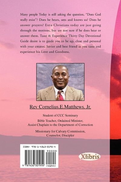 Many people Today is still asking the question, "Does God really exist"? Does he hears, sees and knows us? Does he answer prayers? Even Christians today are just going through the motions, but are not sure if he does hear or answer them. Taste & Experience Thirty Day Devotional Guide desire is to guide you to be up, close and personal with your creator, Savior and best friend as you taste and experience all of his Love and Goodness.