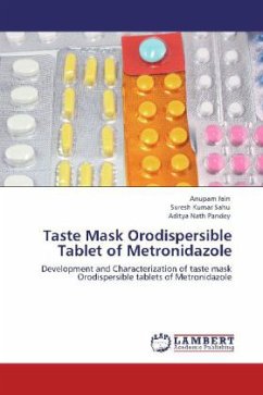 Patients who have problems in swallowing encounter difficulties in taking tablets, particularly pediatric and geriatric patients. Such problems can be resolved by means of orodispersible tablets. These tablets disintegrate instantaneously when put on tongue, releasing the drug that dissolves or disperses in the saliva.Metronidazole is active against a wide variety of anaerobic protozoal parasites and anaerobic bacteria.The present study aim to prepare tablets that can rapidly disintegrate in oral cavity (orodispersible), another challenge with this model drug is to mask the bitter taste. Taste masking was achieved by using aminoalkyl methacrylate copolymer (Eudragit E-100) in the different ratio (1:2 and 1:3) by extrusion technique. The IR shows that there was no significant evidence for interaction between drug and polymers. Six formulations were prepared using taste masked granules and different disintegrants (LH-11) and Avicel PH-102 by varying concentration.