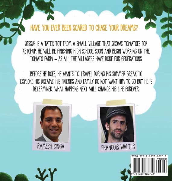 HAVE YOU EVER BEEN SCARED TO CHASE YOUR DREAMS? Jessup is a tater tot from a small village that grows tomatoes for ketchup. He will be finishing high school soon and begin working on the tomato farm - as all the villagers have done for generations. Before he does, he wants to travel during his summer break to explore his dreams. His friends and family do not want him to go but he is determined. What happens next will change his life forever.