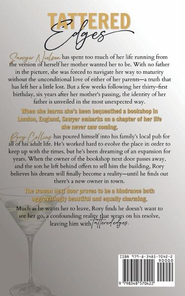Sawyer Nielsen has spent too much of her life running from the version of herself her mother wanted her to be. With no father in the picture, she was forced to navigate her way to maturity without the unconditional love of either of her parents-a truth that has left her a little lost. But a few weeks following her thirty-first birthday, six years after her mother's passing, the identity of her father is unveiled in the most unexpected way. When she learns she's been bequeathed a bookshop in London, England, Sawyer embarks on a chapter of her life she never saw coming. Rory Collins has poured himself into his family's local pub for all of his adult life. He's worked hard to evolve the place in order to keep up with the times, but he's been dreaming of an expansion for years. When the owner of the bookshop next door passes away, and the son he left behind offers to sell him the building, Rory believes his dream will finally become a reality-until he finds out there's a new owner in town. The woman next door proves to be a hindrance both aggravatingly beautiful and equally charming. Much as he wants her to leave, Rory finds he doesn't want to see her go, a confounding reality that wears on his resolve, leaving him with tattered edges.