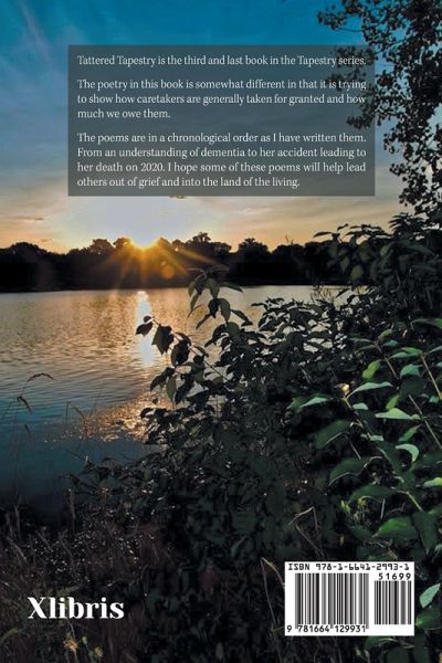 Tattered Tapestry is the third and last book in the Tapestry series. The poetry in this book is somewhat different in that it is trying to show how caretakers are generally taken for granted and how much we owe them. The poems are in a chronological order as I have written them. From an understanding of dementia to her accident leading to her death on April 8, 2020. I hope some of these poems will help lead others out of grief and into the land of the living.