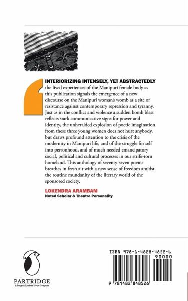 This anthology of poems by Chaoba Phuritshabam, Shreema Ningombam and Soibam Haripriya titled 'Tattooed with Taboos' speaks of the specific angst of the times. The poets use the personal as a tool to document the changing frames of society and its practices. Thematically divided into three sections-'Tattooed with Taboos', 'Angst for Homeland' and 'Love and Longingness' the anthology is an articulation of the desire to trespass spaces denied to women in the personal and the public. Accepted symbols of power are questioned through an exploration of the self. As the title of the anthology suggest there is a play on having to tread the tightrope between the regime of taboos and the equally opposing move towards deification. One of the first ways in which the attempt has been made is through detachment of morality from sexuality. The second section depicts the irony of the homeland-the flux of an inability place this land called home in a stable emotional paradigm. The last section takes up love as disembodied, standing alone connected neither to a person nor an object, nor to the memory of anything tangible. The anthology captures through the various themes a non-linear chronology of desires.