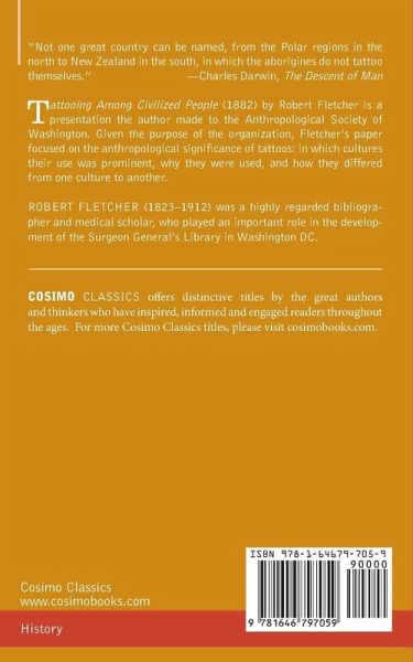 "Not one great country can be named, from the Polar regions in the north to New Zealand in the south, in which the aborigines do not tattoo themselves." -Charles Darwin, The Descent of Man Tattooing Among Civilized People (1882) by Robert Fletcher is a presentation the author made to the Anthropological Society of Washington. Given the purpose of the organization, Fletcher's paper focused on the anthropological significance of tattoos: in which cultures their use was prominent, why they were used, and how they differed from one culture to another.