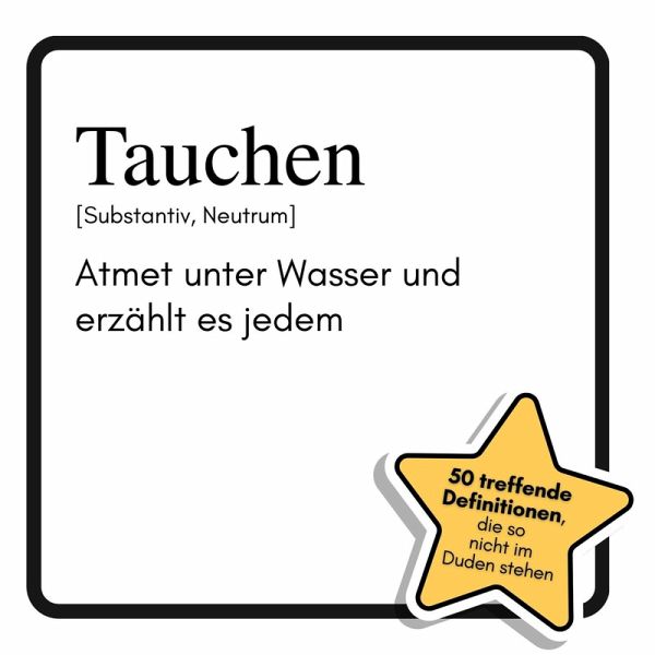 Achtung, dieses Buch könnte Nebenwirkungen haben: Plötzlicher Drang, jedem von der letzten Unterwasser-Expedition zu erzählen, inklusive aller Details über Flossen, O-Ringe und den legendären Buddy! "Tauchen: Atmet unter Wasser und erzählt es jedem" liefert 50 witzige Definitionen samt Illustrationen, die zeigen, warum Taucher die wahren Geschichtenerzähler sind - egal ob es um den ersten Kontakt mit einer Putzergarnele oder den epischen Kampf mit dem Bleigurt geht.Für wen dieses Buch perfekt ist:- Für alle, die beim Wort "Dekompressionskrankheit" nicht an Mathe denken- Für Tauchfans, die Humor unter Wasser schätzen- Für Freunde, die schon immer wissen wollten, was ein Frog Kick istEin Geschenk für alle, die das Meer lieben, ein Muss für Tauchlehrer und ein Lacher für jeden, der schon mal versucht hat, mit einer Sicherheitsboje cool auszusehen.Was dieses Buch bietet:- 50 humorvolle Definitionen rund ums Tauchen- Passende Illustrationen zu jedem Begriff- Spaß für Anfänger und Profis- Das perfekte Geschenk für Wasserratten