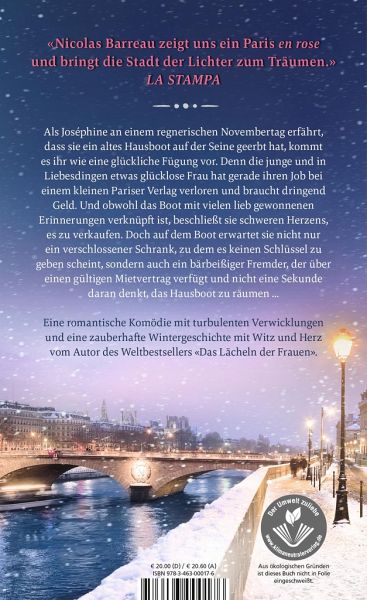 Nicolas Barreau entführt uns auf ein altes Hausboot, mitten hinein in die Stadt der Liebe, in eine romantische Komödie mit turbulenten Verwicklungen und magischen Momenten, an deren Ende ein ganz besonderes Weihnachtsfest steht.