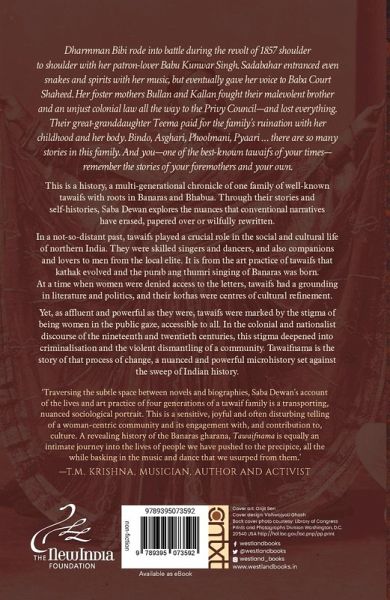 About the Book A NUANCED AND POWERFUL MICROHISTORY SET AGAINST THE SWEEP OF INDIAN HISTORY. Dharmman Bibi rode into battle during the revolt of 1857 shoulder to shoulder with her patron lover Babu Kunwar Singh. Sadabahar entranced even snakes and spirits with her music, but eventually gave her voice to Baba Court Shaheed. Her foster mothers Bullan and Kallan fought their malevolent brother and an unjust colonial law all the way to the Privy Council-and lost everything. Their great-granddaughter Teema paid for the family's ruination with her childhood and her body. Bindo, Asghari, Phoolmani, Pyaari ... there are so many stories in this family. And you-one of the best-known tawaifs of your times-remember the stories of your foremothers and your own. This is a history, a multi-generational chronicle of one family of well-known tawaifs with roots in Banaras and Bhabua. Through their stories and self-histories, Saba Dewan explores the nuances that conventional narratives have erased, papered over or wilfully rewritten. In a not-so-distant past, tawaifs played a crucial role in the social and cultural life of northern India. They were skilled singers and dancers, and also companions and lovers to men from the local elite. It is from the art practice of tawaifs that kathak evolved and the purab ang thumri singing of Banaras was born. At a time when women were denied access to the letters, tawaifs had a grounding in literature and politics, and their kothas were centres of cultural refinement. Yet, as affluent and powerful as they were, tawaifs were marked by the stigma of being women in the public gaze, accessible to all. In the colonial and nationalist discourse of the nineteenth and twentieth centuries, this stigma deepened into criminalisation and the violent dismantling of a community. Tawaifnama is the story of that process of change, a nuanced and powerful microhistory set against the sweep of Indian history. About the Author Saba Dewan is a documentary film-maker. Her documentaries have focused on issues of gender, sexuality and culture. This is her first book and has emerged from her trilogy of films on stigmatised women performers: Delhi-Mumbai-Delhi (2006) about the lives of bar dancers; Naach (The Dance, 2008) on women dancers in rural fairs and The Other Song (2009) about the art and lifestyle of the tawaifs or courtesans. The research and writing of the book was supported by a fellowship from the New India Foundation. Saba lives in Gurgaon.