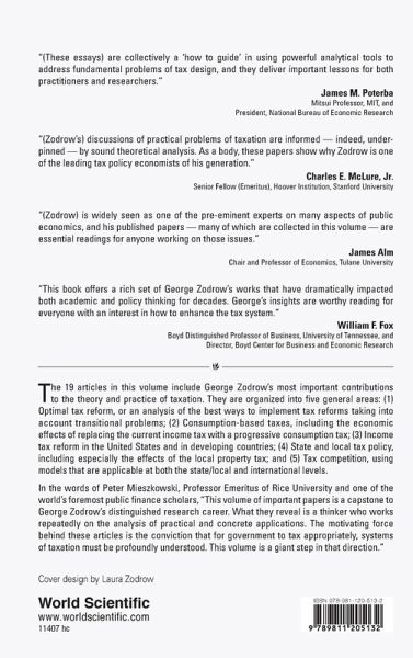 The 19 articles in this volume include George Zodrow's most important contributions to the theory and practice of taxation. They are organized into five general areas: (1) Optimal tax reform, or an analysis of the best ways to implement tax reforms taking into account transitional problems; (2) Consumption-based taxes, including the economic effects of replacing the current income tax with a progressive consumption tax; (3) Income tax reform in the United States and in developing countries; (4) State and local tax policy, including especially the effects of the local property tax; and (5) Tax competition, using models that are applicable at both the state/local and international levels. In the words of Peter Mieszkowski, Professor Emeritus of Rice University and one of the world's foremost public finance scholars, "This volume of important papers is a capstone to George Zodrow's distinguished research career. What they reveal is a thinker who works repeatedly on the analysis of practical and concrete applications. The motivating force behind these articles is the conviction that for government to tax appropriately, systems of taxation must be profoundly understood. This volume is a giant step in that direction."