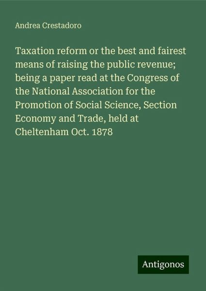 Taxation reform or the best and fairest means of raising the public revenue; being a paper read at the Congress of the National Association for the Promotion of Social Science, Section Economy and Trade, held at Cheltenham Oct. 1878 - Crestadoro, Andrea