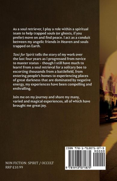 As a soul retriever, I play a role within a spiritual team to help trapped souls (or ghosts, if you prefer) move on and find peace. I act as a conduit between my angelic friends in Heaven and souls trapped on Earth. Taxi for Spirit tells the story of my work over the last four years as I progressed from novice to master status - though I still have much to learn! From a soul retrieval for a solitary bee to escorting thousands from a battlefield, from entering people's homes to experiencing places of great darkness that are dominated by negative energy, my experiences have been compelling and enthralling. Join me on my journey and share my many, varied and magical experiences, all of which have brought me great joy.