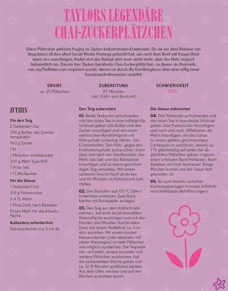 Bake it off, cook it up - and make the whole place shimmer!Taylor Swift ist der größte Popstar der Welt. Keine Künstlerin hat international jemals mehr Platten verkauft, mehr Awards gewonnen oder mehr Fans mit ihren Konzerten begeistert. Doch Taylors unglaubliches Talent beschränkt sich nicht allein auf ihre Musik - auch in der Küche ist sie extrem kreativ! Im Laufe der Jahre hat sie in den Sozialen Medien immer wieder Bilder und Rezepte ihrer Lieblingsgerichte gepostet und in vielen Interviews begeistert Auskunft über ihre Leibspeisen gegeben.Dieses exklusive Koch- und Backbuch vereint erstmals sechzig von Taylors Lieblingsrezepten. Egal, ob herzhaftes Südstaaten-Soulfood für gesellige Abende unter Freunden, süße Backideen aus Taylors legendären »Keksback-Partys« (natürlich inklusive ihrer berühmten Chai-Zuckerplätzchen!), köstliche Desserts, ausgefallene Kaffee-Kreationen, deftiges Nicht-ganz-so-Fastfood oder die besten Gerichte von Mama Swift -jedes dieser Rezepte erzählt eineGeschichte aus Tays Leben!Ein Hochgenuss für alle Sinne - und für jede Ära!Are you ready for it?!Von SPIEGEL-Bestsellerautor Tom Grimm, Gewinner des World Cookbook Award!