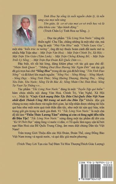 Tác ph¿m "T¿c Lòng Non N¿¿c" m¿t kho tài li¿u hàm tàng nhi¿u d¿ ki¿n mà tác gi¿ ¿ã khéo phân ¿¿nh t¿ng ch¿¿ng, chia thành t¿ng m¿c, ¿¿c gi¿ có th¿ l¿n theo b¿n M¿C L¿C, tü nghi ch¿n ¿¿c t¿ng ph¿n, nghiên c¿u t¿ng tiêu ¿¿ trong tác ph¿m ¿¿ ti¿p nh¿n ¿¿¿c nhi¿u cao ki¿n qua nhi¿u khía c¿nh, tü theo s¿ thích và s¿ thün h¿p c¿a t¿ng ¿¿c gi¿ chúng ta.¿¿c tác ph¿m "T¿c Lòng Non N¿¿c" riêng tôi thi¿n ngh¿ "Chu T¿n, ch¿ng nh¿ng là m¿t nhà v¿n, mà ông là m¿t "Nhà V¿n Hóa", m¿t "Lý Thuy¿t Gia" m¿t "Chi¿n L¿¿c Gia", m¿t" Nhà ki¿n trúc t¿ t¿¿ng", ông ¿ã tü thüc hoàn c¿nh ¿¿t n¿¿c, nh¿n xét tình hình theo t¿ng b¿¿c ti¿n c¿a th¿i ¿¿i, ti¿n hành nh¿p cüc, m¿ ra nhi¿u "M¿t Tr¿n", phù h¿p v¿i ¿¿a hình, ¿¿a v¿t, v¿i ý th¿c c¿a nhân s¿ tr¿¿c nhi¿u tr¿n tuy¿n, v¿i kh¿ n¿ng chuyên bi¿t t¿ng ng¿¿i, t¿ng b¿ ph¿n chuyên ngành, thi hành t¿ng trách nhi¿m trong nhi¿u m¿i ti¿n công vào m¿c ¿ích, tiêu di¿t ¿¿ch th¿ (ch¿ ¿¿ C¿ng s¿n) ¿¿t thành qü, nguy¿n v¿ng ¿¿c mong c¿a toàn dân t¿c.¿¿c toàn b¿ "T¿c Lòng Non N¿¿c" ¿¿c gi¿ chúng ta s¿ b¿t g¿p nh¿ng ph¿¿ng pháp trình bày, k¿ sách c¿a nhi¿u h¿¿ng ti¿n công, mà nhà v¿n Chu T¿n ¿ã v¿ch s¿n cho chúng ta qua t¿ng M¿t Tr¿n nh¿ *- M¿t Tr¿n V¿n Hoá; *- M¿t Tr¿n V¿n Ngh¿; *- M¿t Tr¿n Chính Tr¿, Xã H¿i; *- M¿t Tr¿n Tôn Giáo (Tâm Linh); *- M¿t Tr¿n Ch¿ng Kh¿ng B¿; *- M¿t Tr¿n Tri¿t Lý S¿ng; *- M¿t Tr¿n ¿¿i ¿oàn K¿t Qüc Dân v.v...