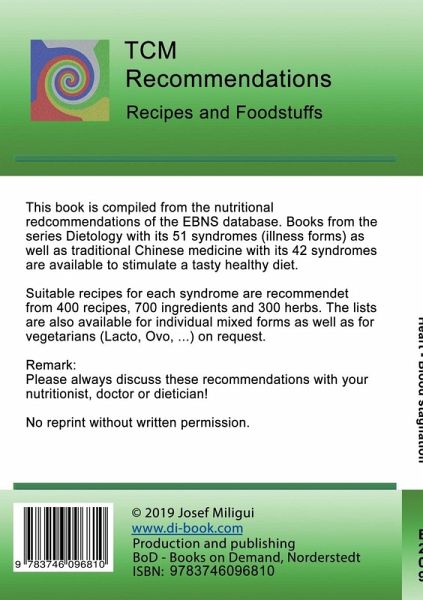di-book - nutritional counseling after TCM syndromes - Diet recommendations, recipes and food supplements for supporting the therapy. The recipes help you to cook tasty dishes. All recipes with cooking instructions, calorie indications and description of the effect. The foods are shown in categories recommended, yes, little and no and help you to orientate if your own recipes should be cooked.